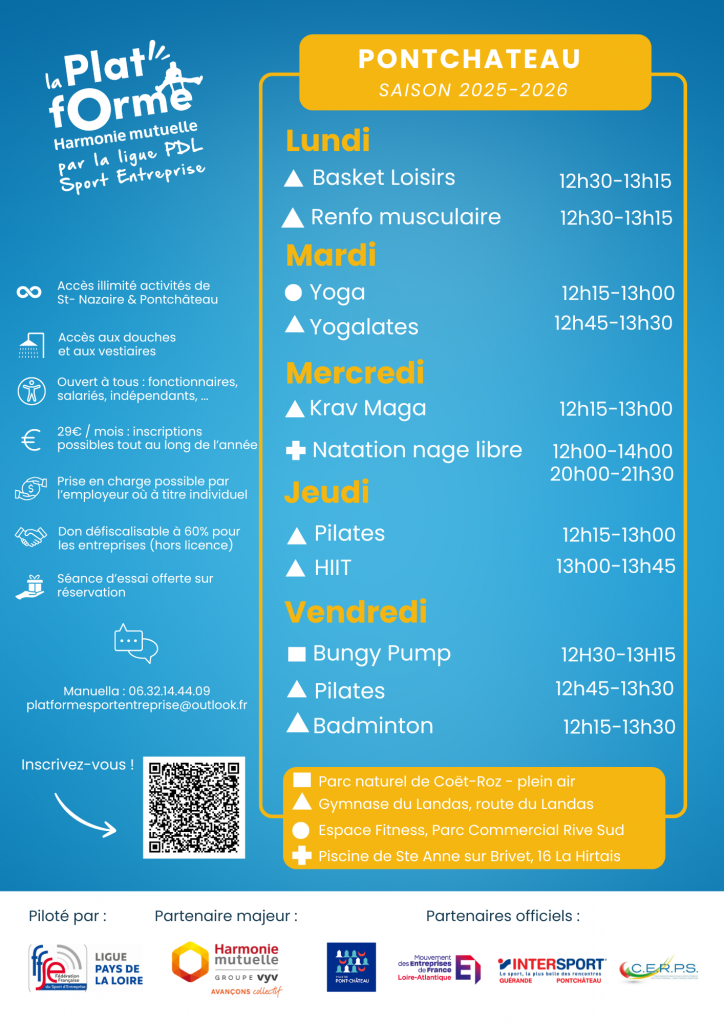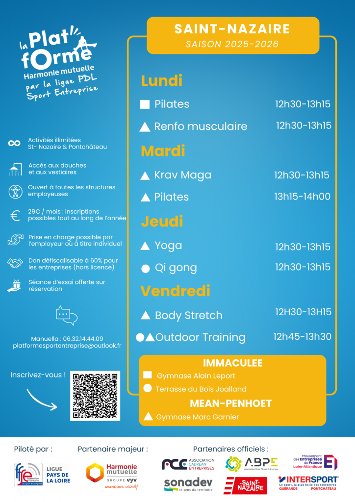Espace LicenciéLa Plat’fOrme Harmonie Mutuelle Sport Entreprise est un service inter-entreprises d’activités physiques sur le temps du midi de Pontchâteau et Saint Nazaire,